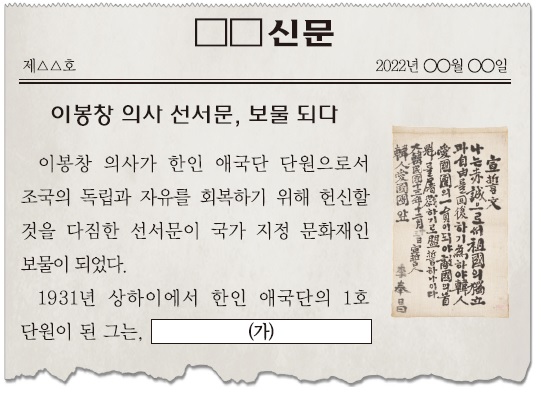 - 2023 제64회 한국사능력검정시험(한능검) 기본 37번 기출문제 – 이봉창 의사