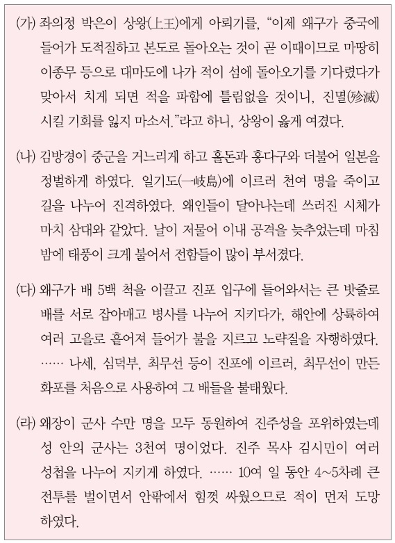 - 2023 제65회 한국사능력검정시험(한능검) 심화 26번 기출문제 – 대마도 정벌, 일본 원정, 진포 해전, 임진왜란