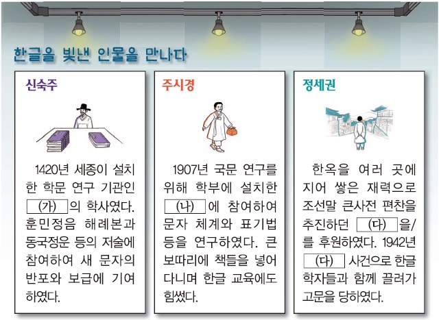 - 2023 제66회 한국사능력검정시험(한능검) 기본 50번 기출문제 – 집현전, 조선어 연구회, 조선어 학회
