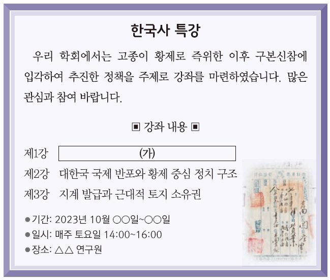 - 2023 제67회 한국사능력검정시험(한능검) 심화 35번 기출문제 – 대한제국