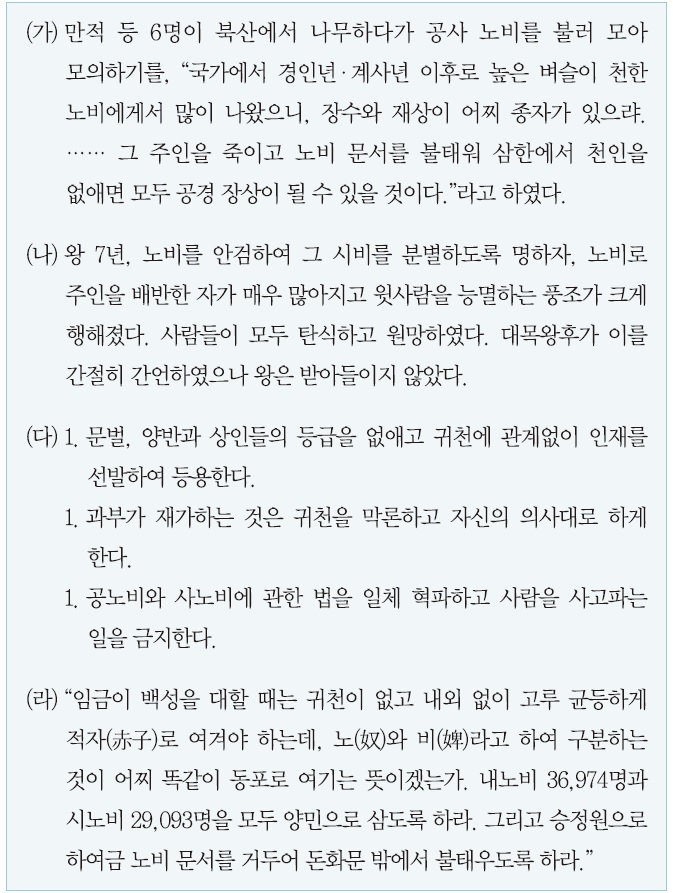 2023 제67회 한국사능력검정시험(한능검) 심화 47번 48번 기출문제 – 노비의 역사