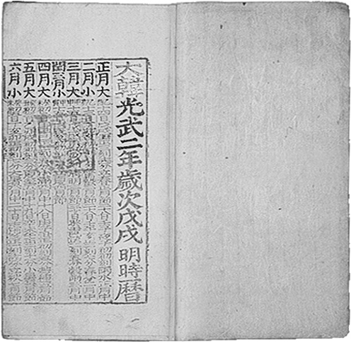 자료는 고종이 (가)의 수립을 선포한 이후 간행된 달력이다. 이 달력에는 새로운 연호인 ‘광무’가 명시되어 있고, 고종의 황제 즉위일이 기재되어 있다. (가)은/는 이 달력을 간행하여 자주독립 국가로서의 면모를 드러내고자 하였다.