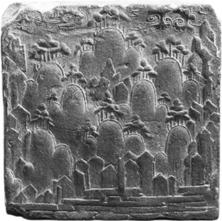 산수무늬 벽돌은 (가)의 수도였던 사비(현재 부여군의 일부) 인근에서 발견되었다. 이 유물에는 신선들이 사는 이상 세계의 모습이 표현되어 있다.