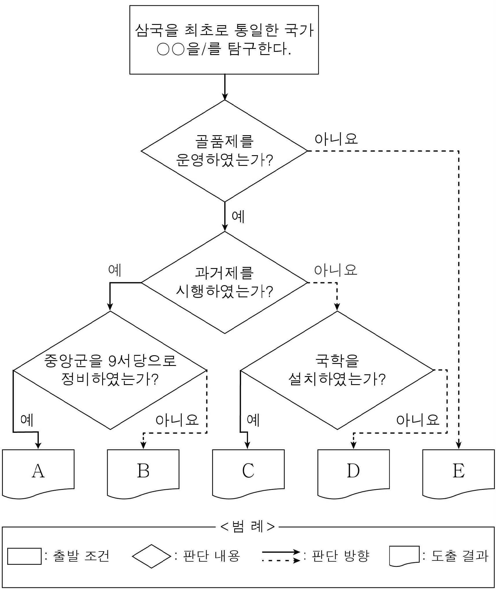 한국사 학습지 ※ 다음 순서도에서 도출되는 결과를 정답에 적어 주세요.