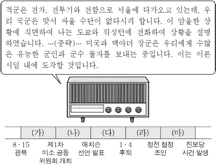 18. 다음 담화가 발표된 시기를 연표에서 옳게 고른 것은? [3점]