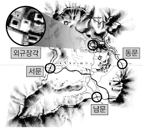 지도는 프랑스군이 강화도를 침입한 이 사건 당시 측량한 정보를 바탕으로 제작된 것이다. 지도에는 강화산성의 각 성문과 강화행궁 등이 그려져 있고, 특히 이 사건 당시 프랑스군이 도서 등 문화유산을 약탈한 곳인 외규장각도 나타나 있다. |