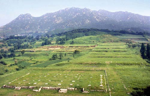 만월대는 개성의 고려 궁궐터를 부르는 명칭이다. 고려를 건국한 이 왕은 철원에서 송악(오늘날 개성)으로 도읍을 옮기면서 자신의 집이 있던 자리에 궁궐을 지었다. 이후 공민왕 때 홍건적의 침입으로 불타 현재는 터만 남아 있다. |