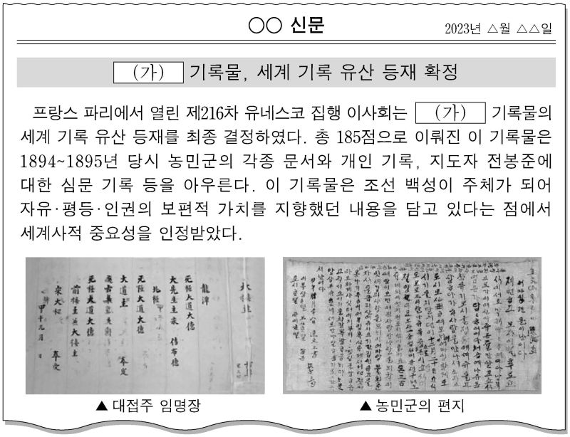 2024학년도(2023) 수능 한국사 홀수형 9번 기출문제 – 동학 농민 운동