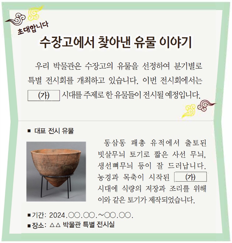 - 2024 제69회 한국사능력검정시험(한능검) 심화 1번 기출문제 – 신석기 시대
