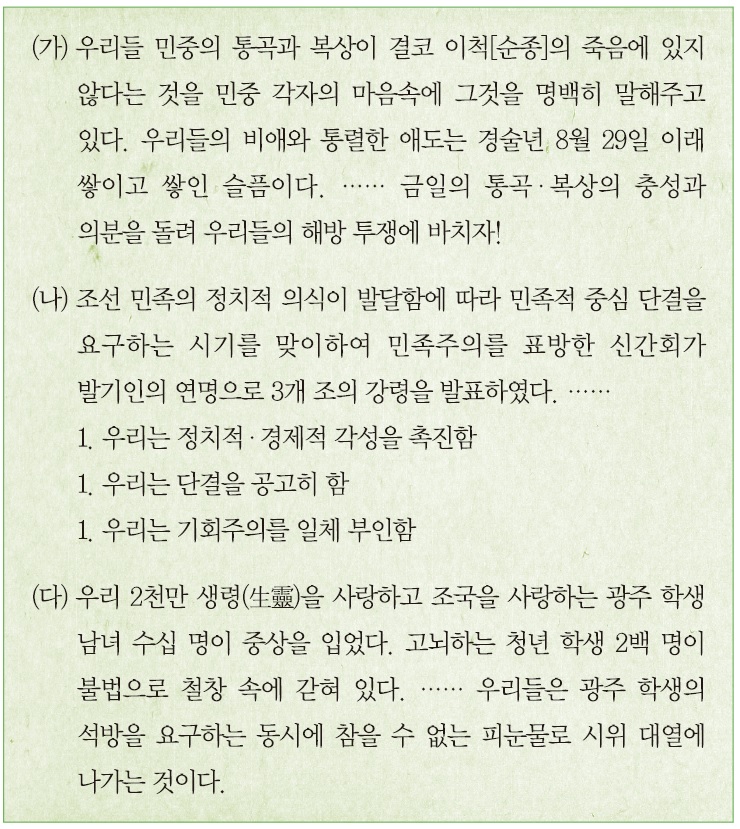 - 2024 제69회 한국사능력검정시험(한능검) 심화 37번 기출문제 – 6·10 만세 운동, 신간회, 광주 학생 항일 운동