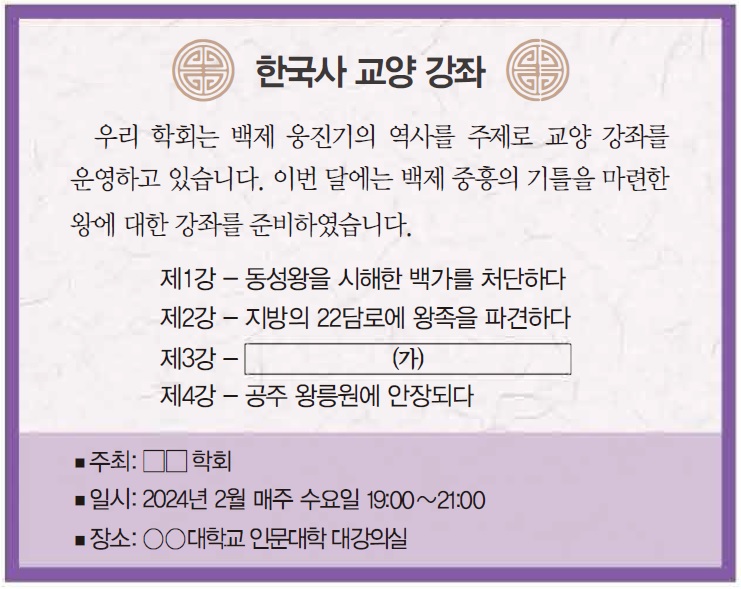 - 2024 제69회 한국사능력검정시험(한능검) 심화 4번 기출문제 – 백제 무령왕