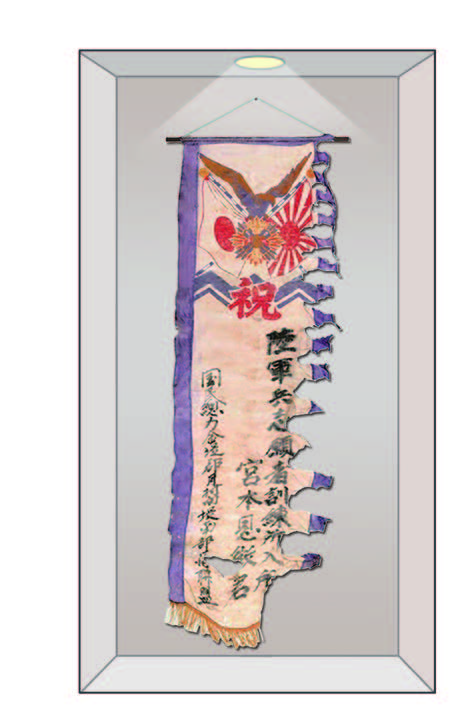 장행기는 지원병 형식으로 끌려가는 청년을 환송하기 위해 국민 총력 조선 연맹 지부에서 만들어 준 깃발이다. 이 장행기의 주인공은 일제가 중일 전쟁을 일으키고 침략을 확대 하던 시기에 지원병으로 끌려가 전사하였다. 장행기에는 창씨개명한 그의 일본식 이름이 적혀 있다. |