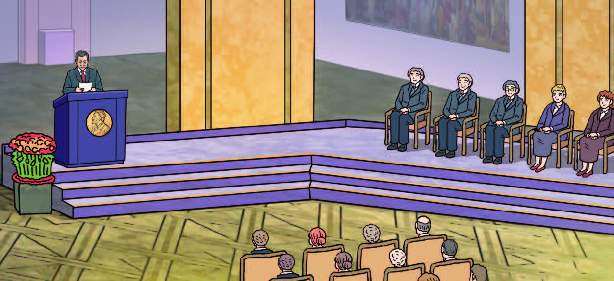 A: 노벨 위원회가 긍정적으로 평가해 준 최근의 남북 관계에 대해 몇 말씀드리겠습니다. 저는 지난 6월에 북한의 김정일 국방위원장과 역사적인 남북 정상 회담을 가졌습니다. …… 우리의 일관되고 성의 있는 자세와 노르웨이를 비롯한 전 세계 모든 나라의 햇볕 정책에 대한 지지는 북한의 태도를 바꾸게 만들었습니다. |