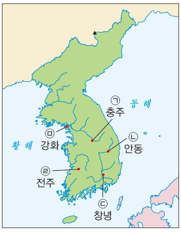 50. (가) 지역을 지도에서 옳게 찾은 것은? [1점]