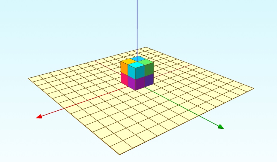 콘크리트 블록 8개로 정육면체를 만들면, 한 면이 작은 블록 4면이 되는 정육면체가 된다.