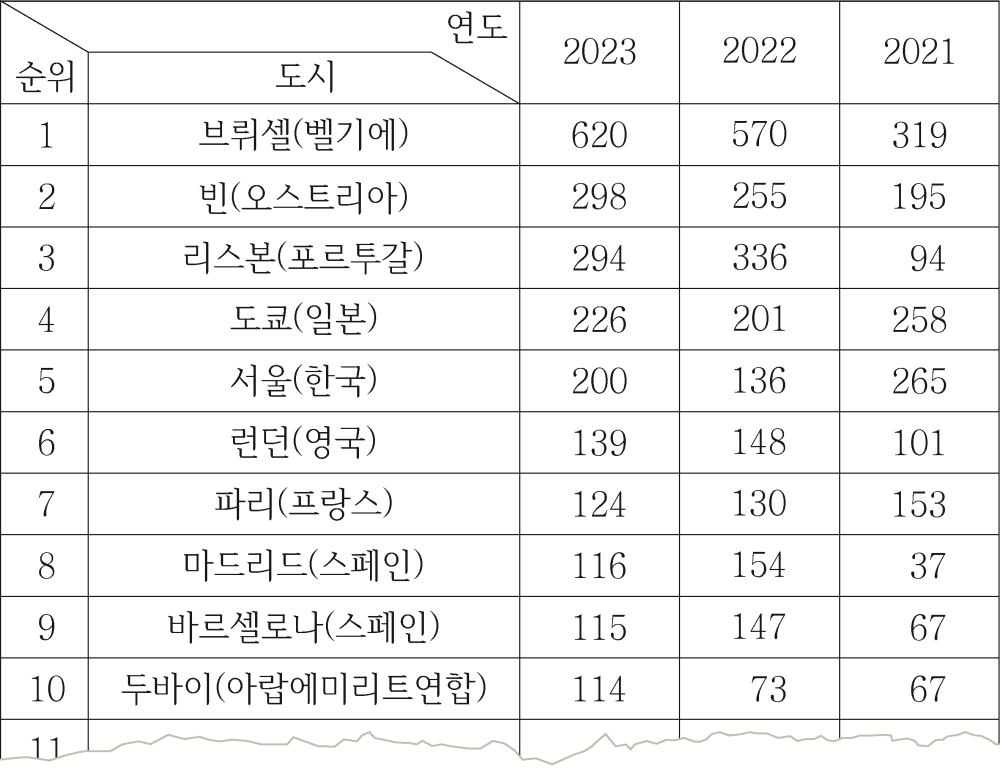 ② 매년 국제회의 개최 건수가 가장 많은 도시는 브뤼셀이다.