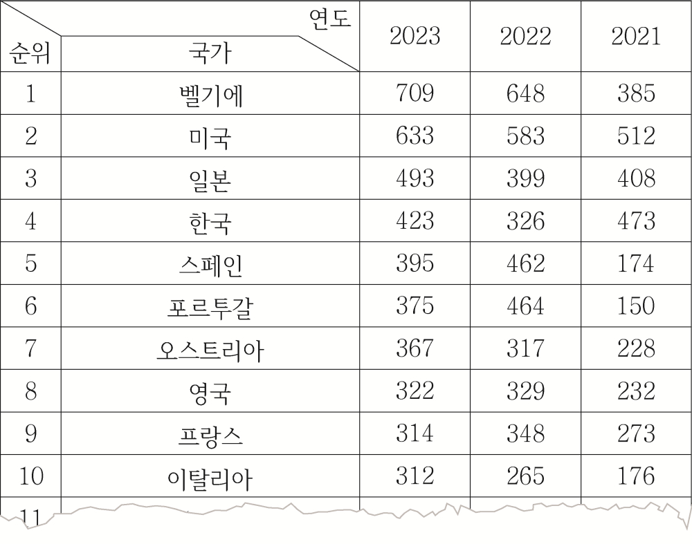 순위는 2023년 국제회의 개최 건수 기준이다.