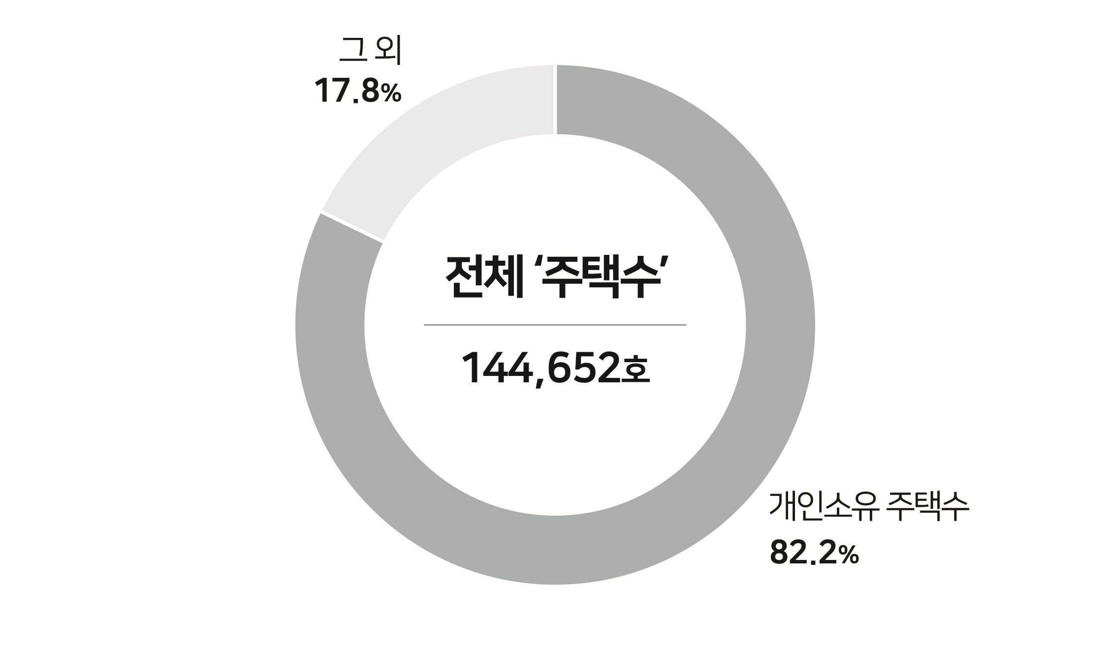 A~E지역 전체 ‘주택수’ 중 ‘개인소유 주택수’ 비중: \(\dfrac{\text{119}}{\text{145}}\) ≒ 82.1%