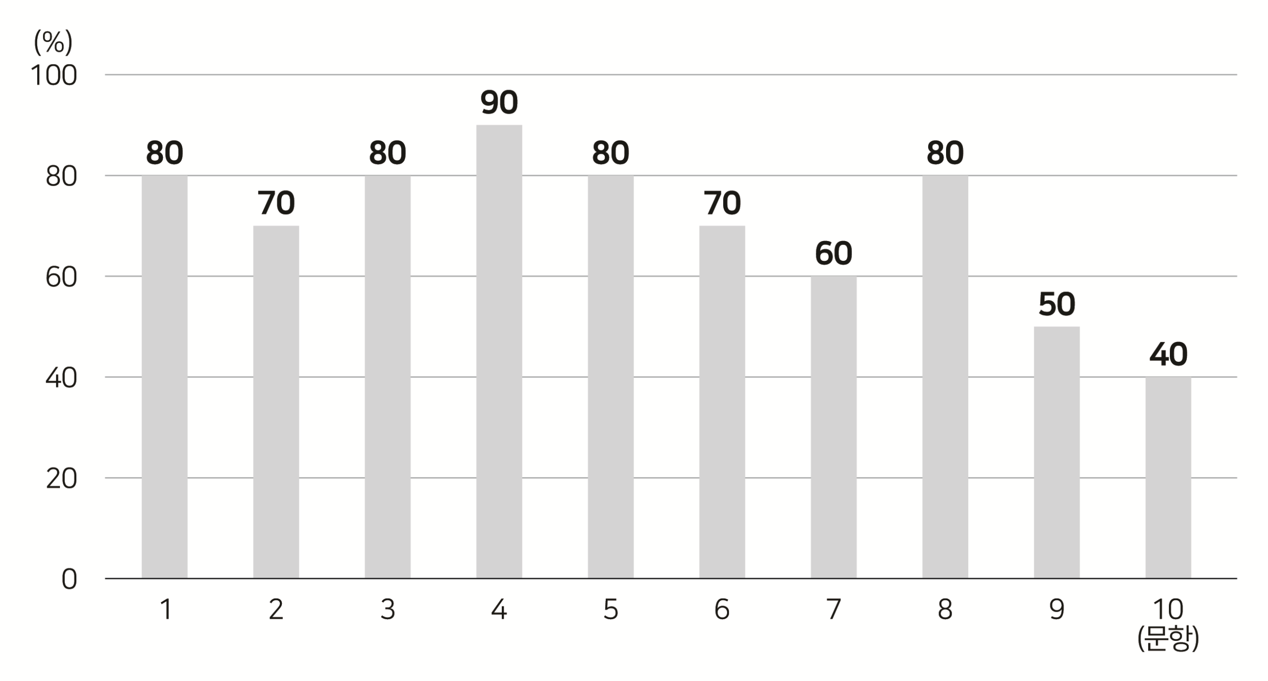 <그림> ‘갑’반 학생 10명(A~J)의 문항별 정답률