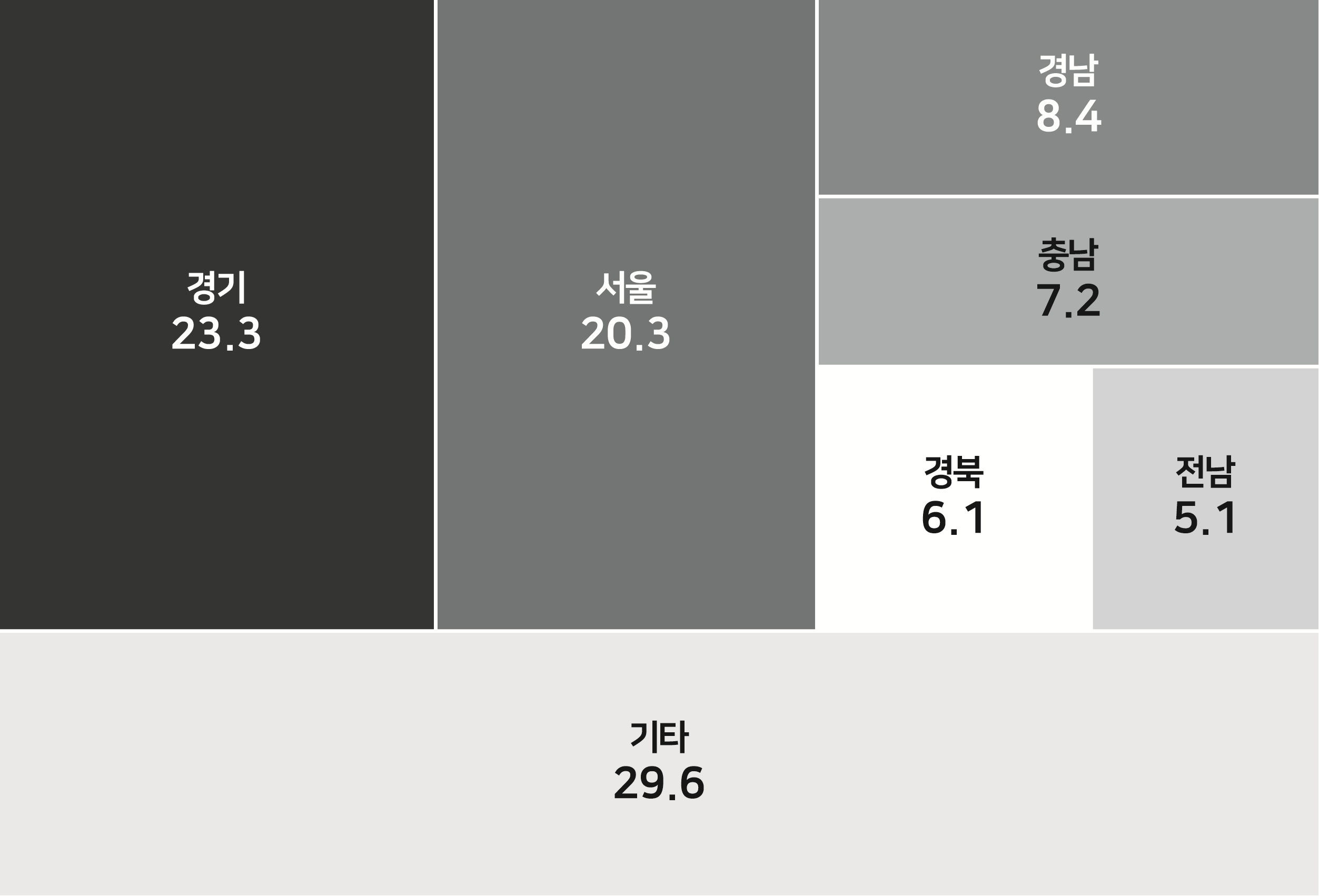 ③ 우리나라 푸드트럭의 지역별 비중(2023년 12월 31일 기준)